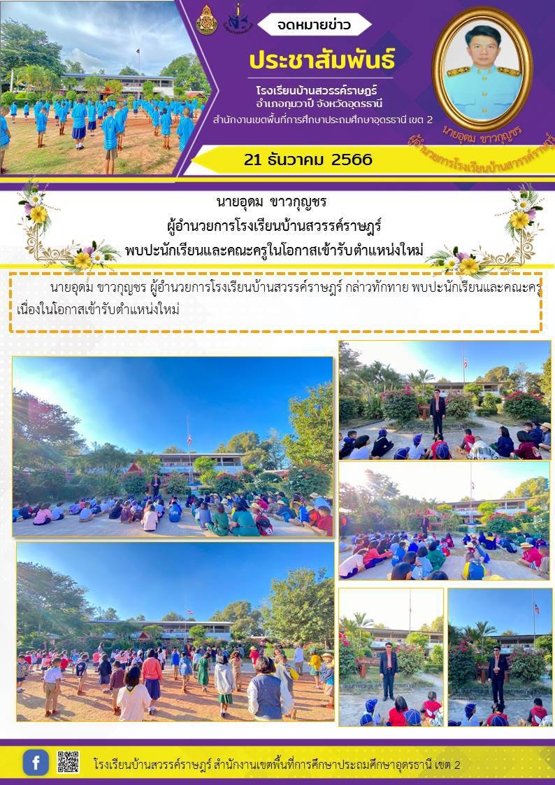 ท่าน ผอ.อุดม ขาวกุญชร ผู้อำนวยการโรงเรียนบ้านสวรรค์ราษฎร์ พบปะนักเรียน