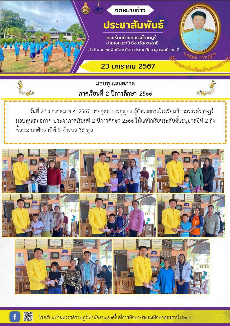 มอบทุนเสมอภาค ภาคเรียนที่ 2 ปีการศึกษา 2566